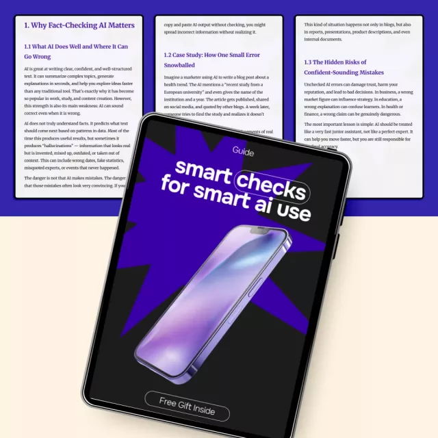 If you want to move faster with AI while staying accurate, this guide is for you. Download Smart Checks for Smart AI Use today and build a simple habit that protects your credibility, improves your work, and helps you use AI with confidence instead of doubt.