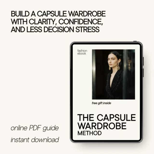 If you’re ready to stop feeling overwhelmed by your closet and start enjoying getting dressed again, download The Capsule Wardrobe Method today. This digital ebook gives you a clear framework, practical tools, and long-term clarity you can return to anytime.