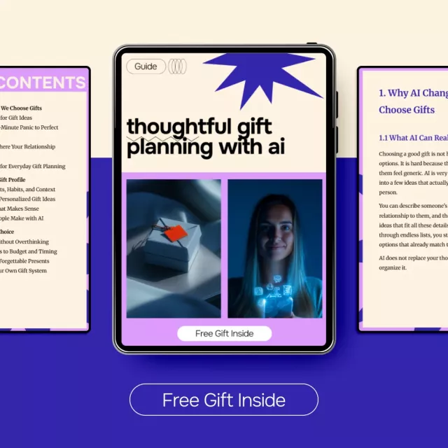 This digital guide is perfect for anyone who wants to give meaningful gifts without the guesswork. Whether you’re a busy professional, a parent, a friend who loves surprises, or simply someone who wants to improve your gift-giving game, Thoughtful Gift Planning with AI provides practical strategies to make every gift memorable.